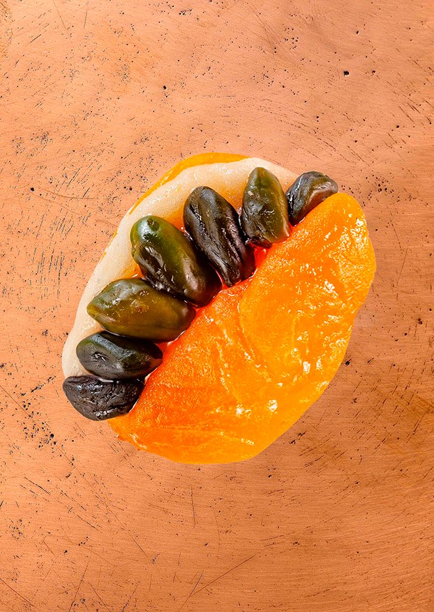 Abricot sec fourré à la pâte d'amande et décoré de pistachesMaison houry